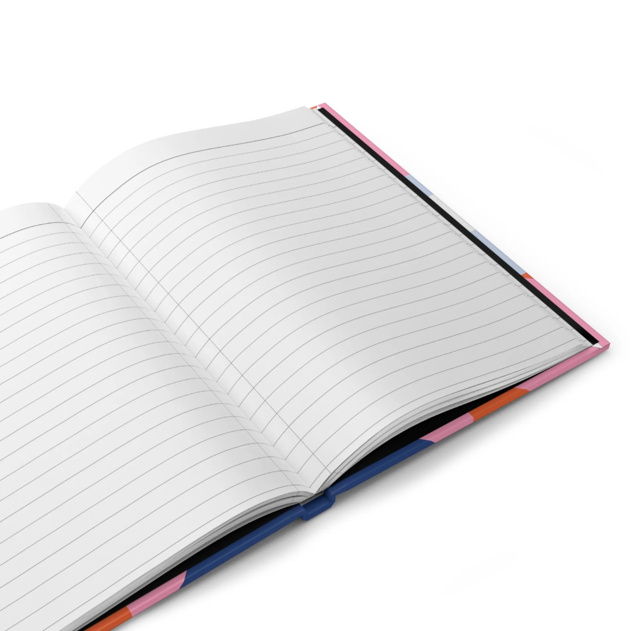 Bright, modern hardcover journal made to hold plans, sketches, and everyday notes. The matte laminated cover brings a smooth, low-gloss finish that protects bold, geometric art printed across the full wraparound surface. Inside, 150 lined pages with handy perforations and a flexible casewrap (sewn) binding let you write comfortably, fold the book back, and tear out pages cleanly when needed. A discreet production barcode sits on the back cover.