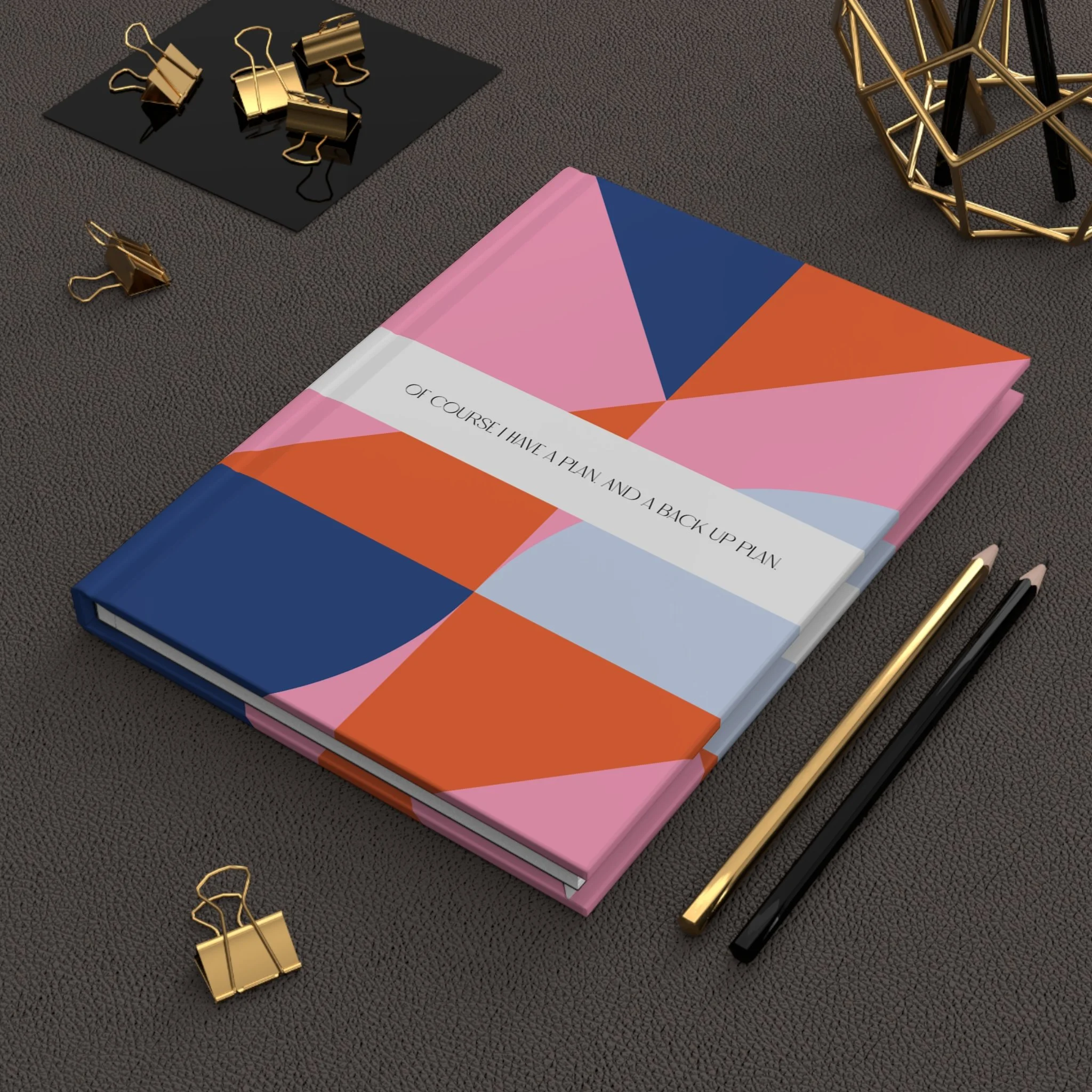 Geometric Colorblock Hardcover Journal — “Of Course I Have a Plan (And Backups)”