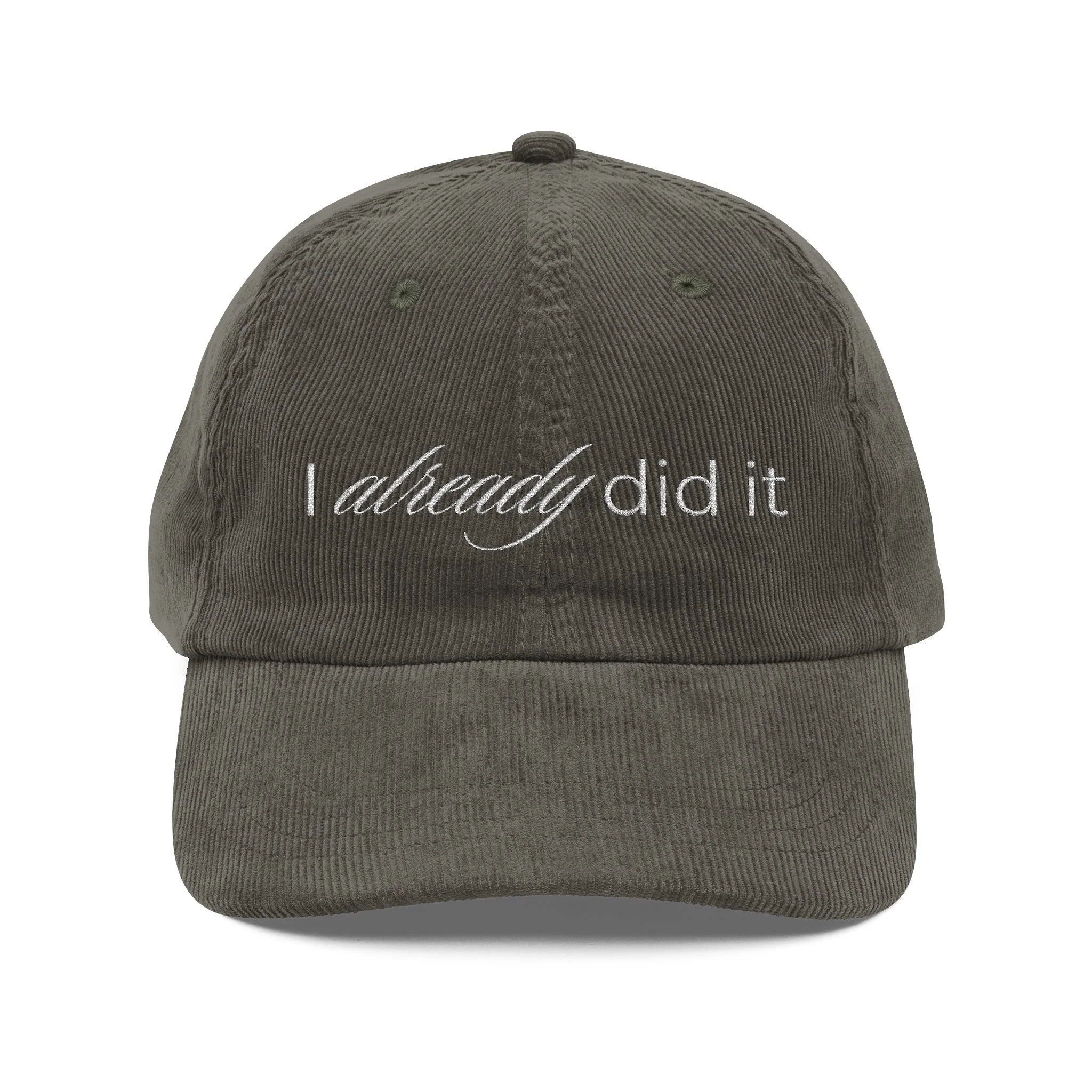 I already did it Embroidered Corduroy Cap — Vintage Adjustable Hat