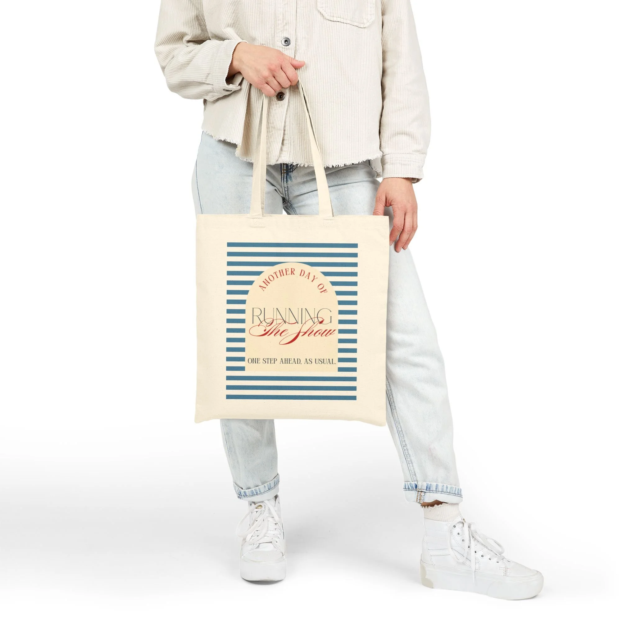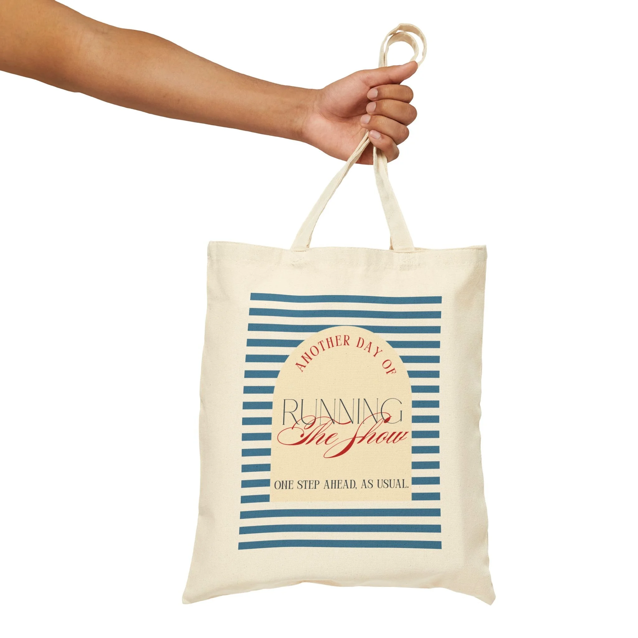Tote Bag — "Another Day of Running the Show" Striped Canvas Tote